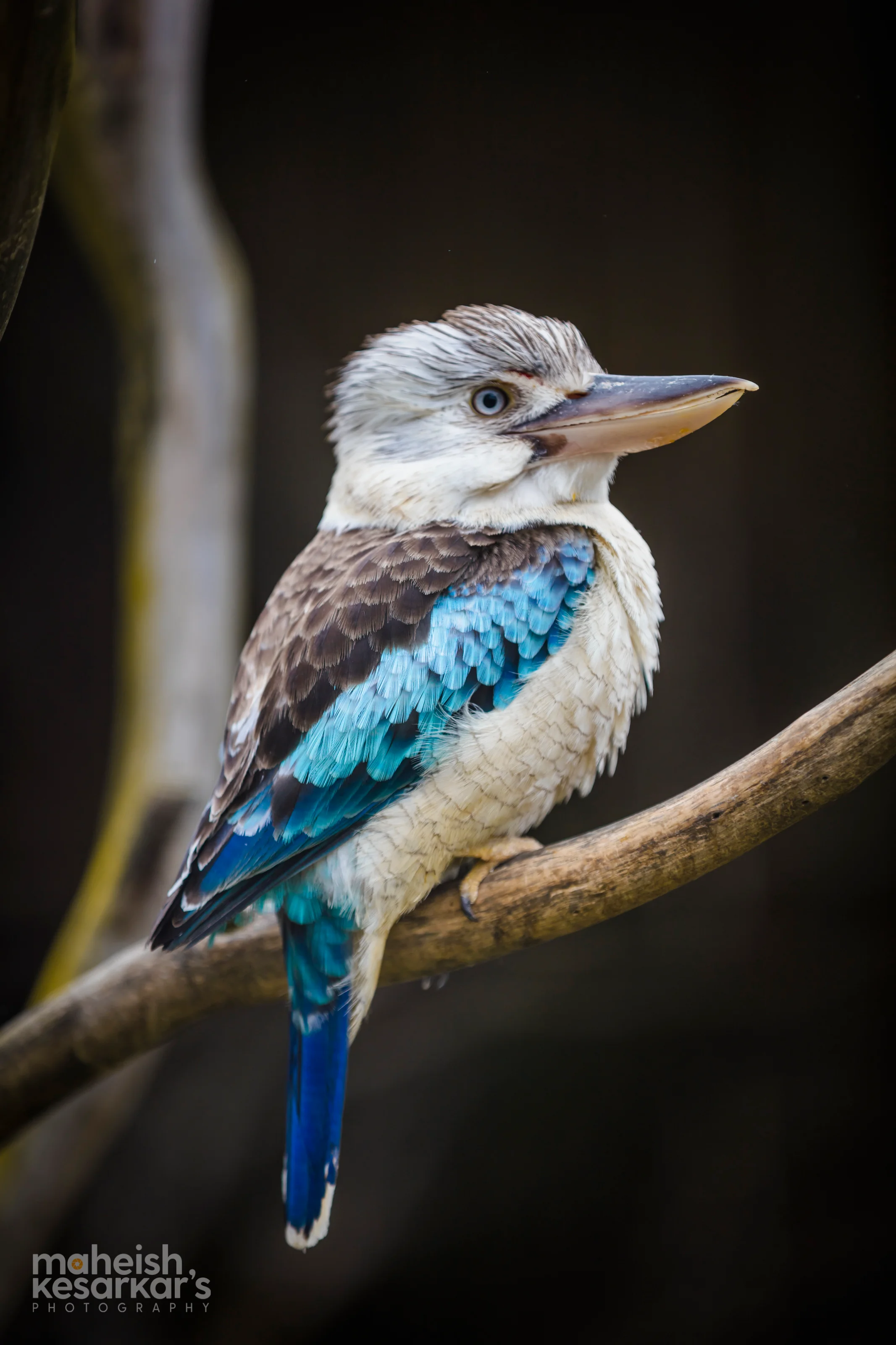 The Blue-winged Kookaburra is native to northern Australia and New Guinea. The male, above, has a blue tail as well as turquoise blue on the wings and rump.