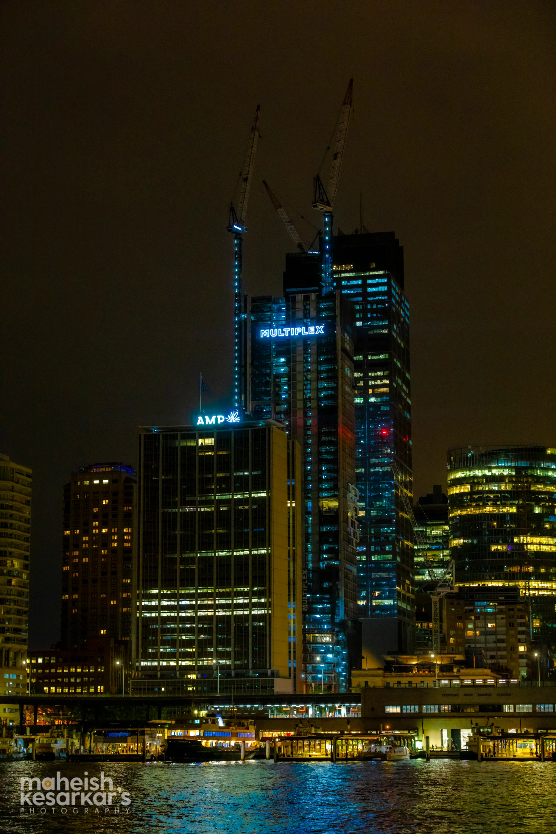 Sydney Harbour Bridge with blue lights during Vivid Sydney Australia