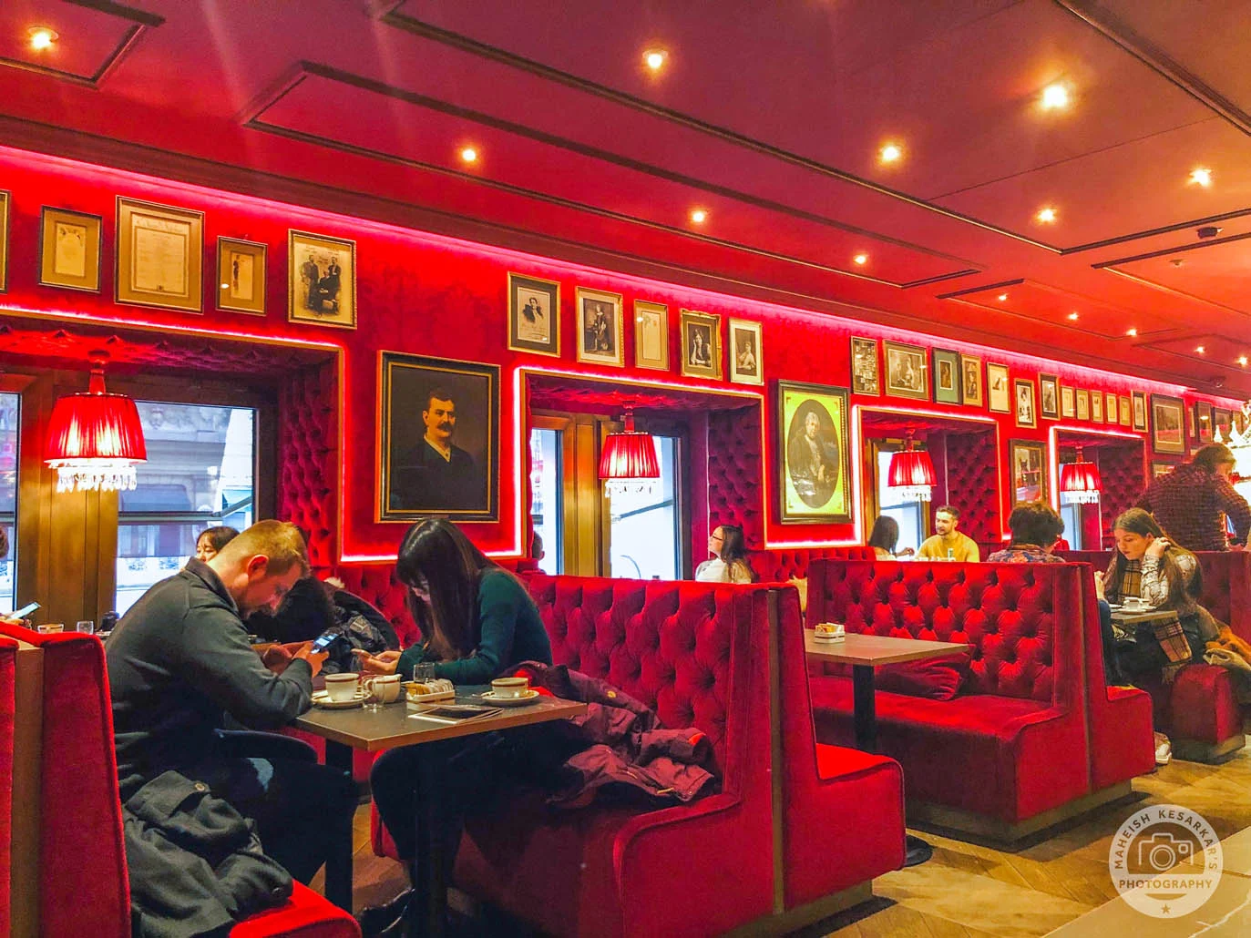 Hotel Sacher Vienna Austria. The red Tea Room to taste Sacher Torte
