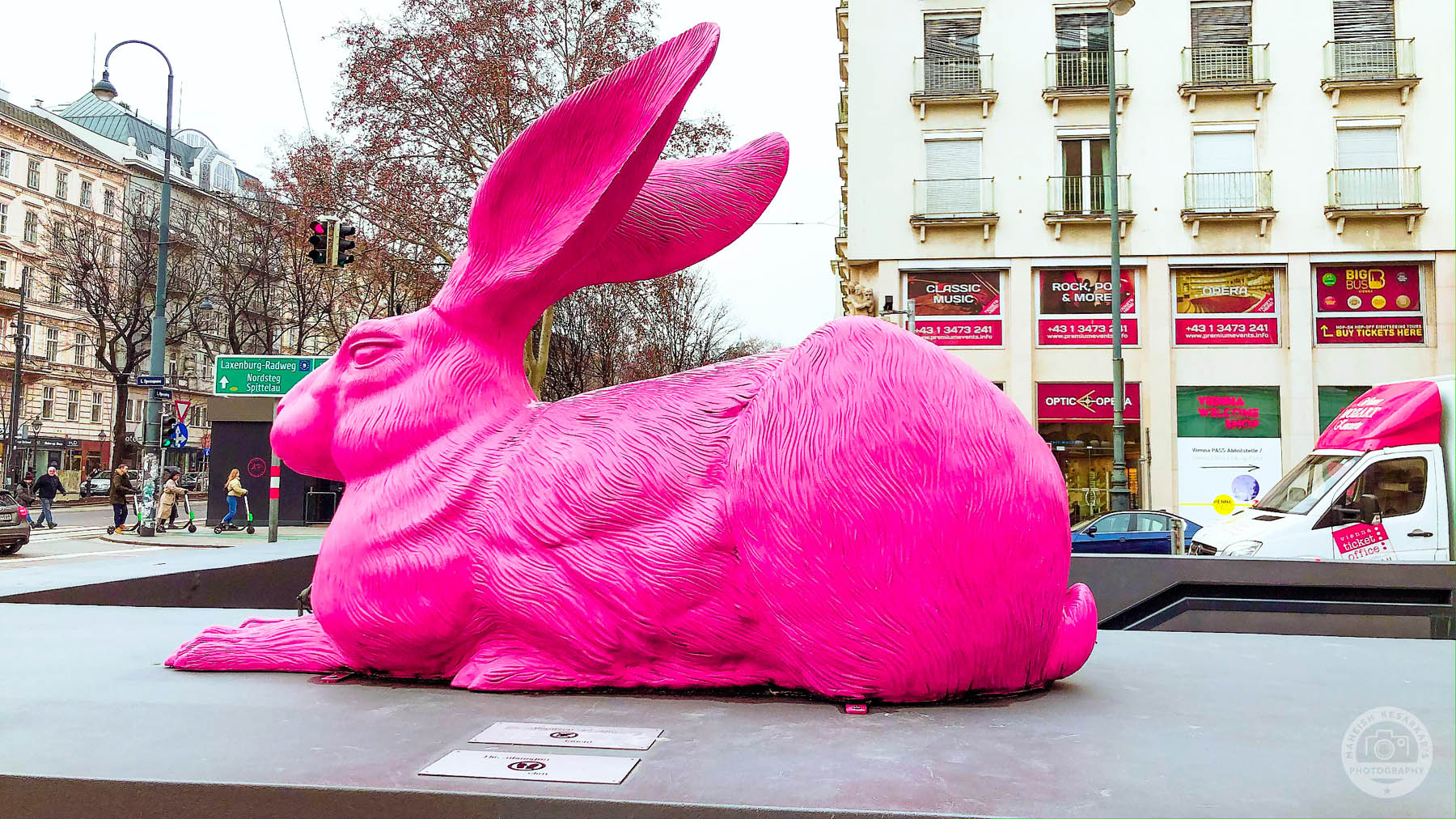 Pink bunny sculpture near State Opera in Vienna. Made by the German concept artist Ottmar Horl