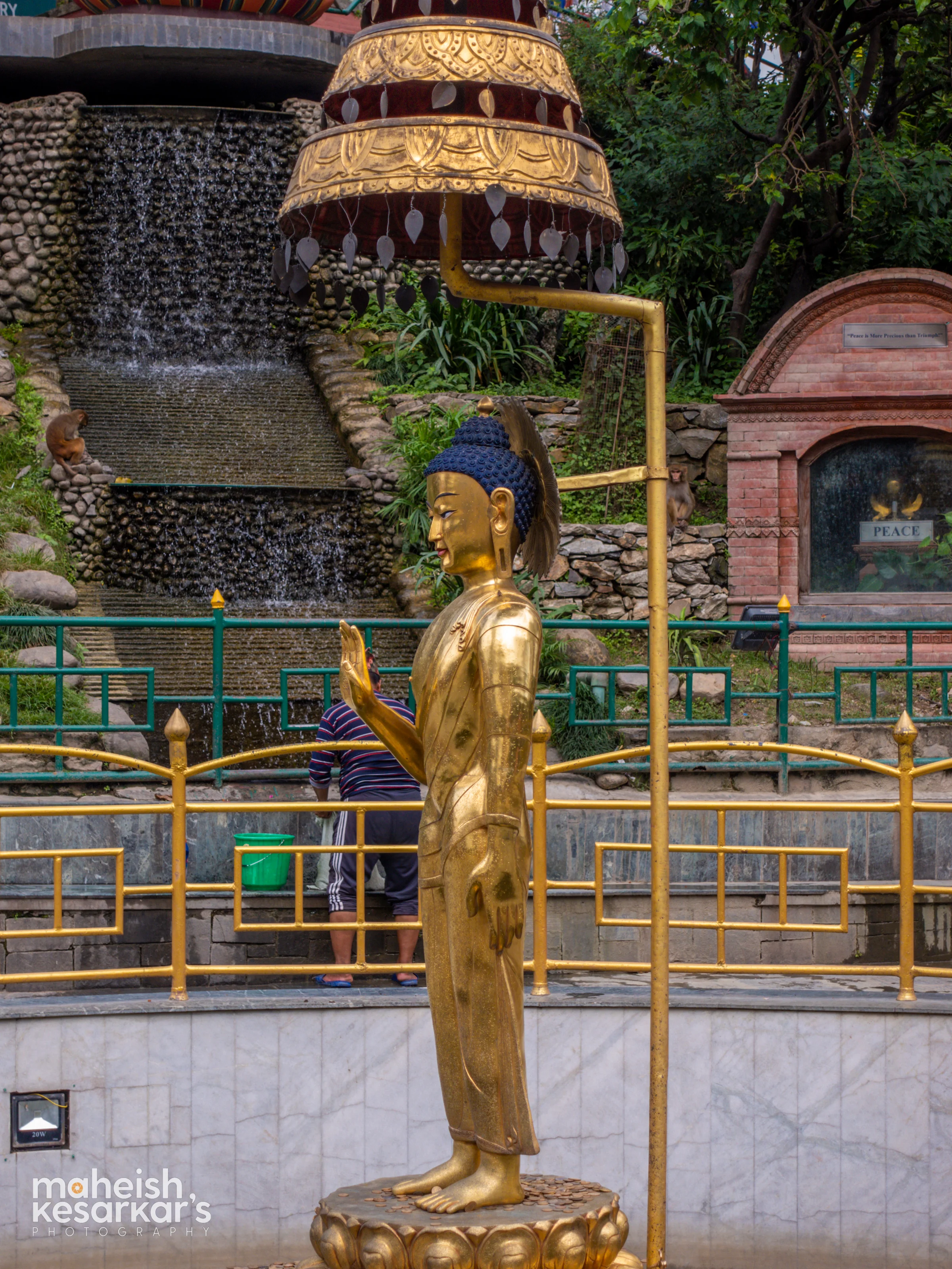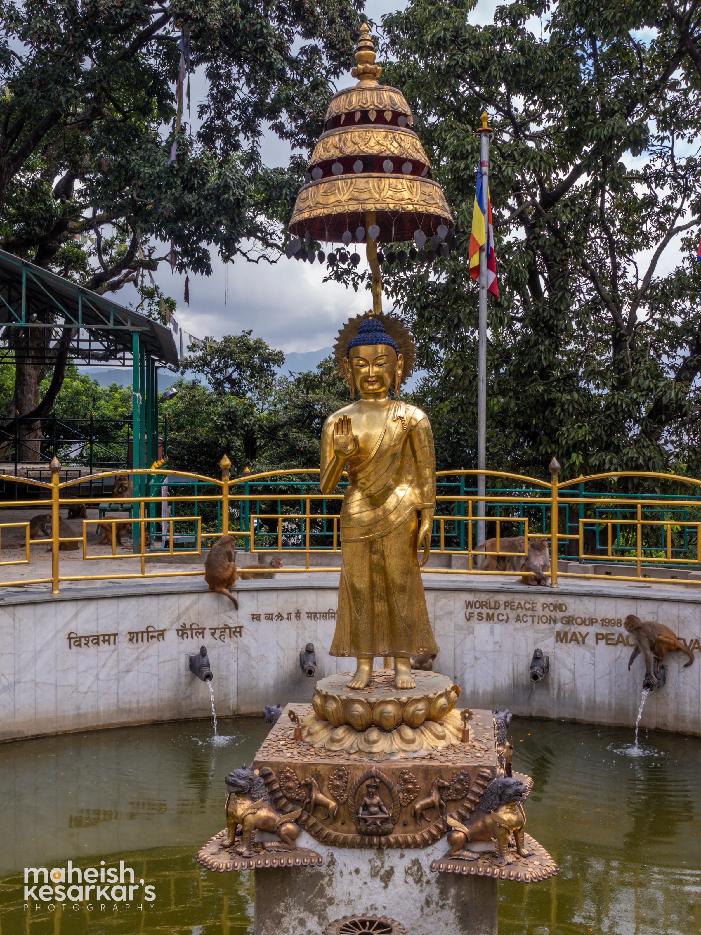 Golden Buddha Statue at World Peace Pond – Spiritual Tranquility in Nepal