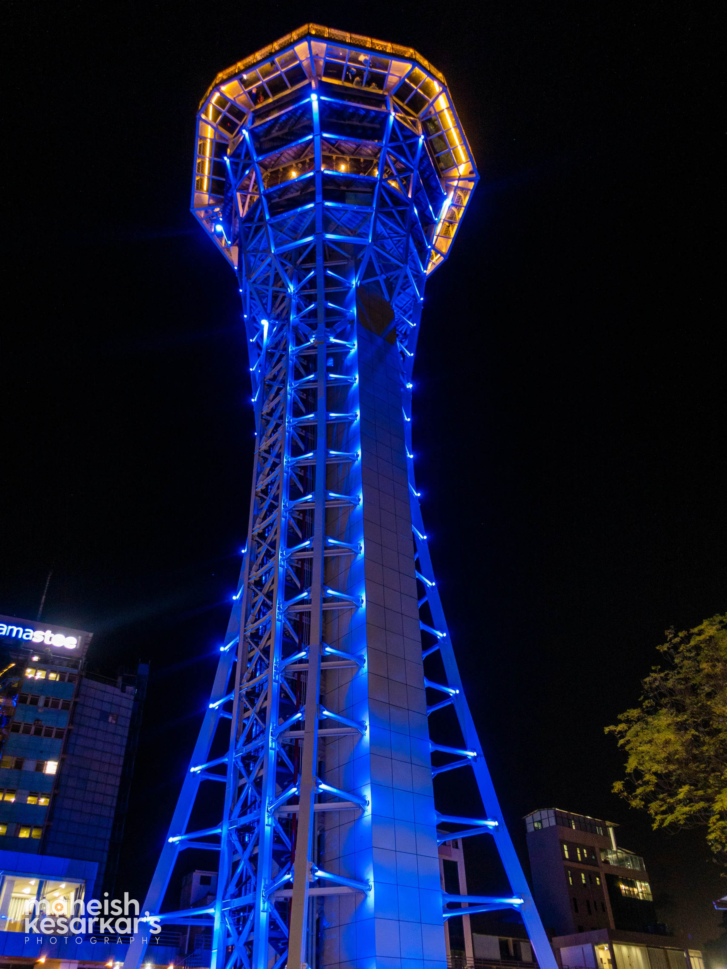 Illuminated Dharahara Tower in Kathmandu, Nepal – A Modern Landmark at Night