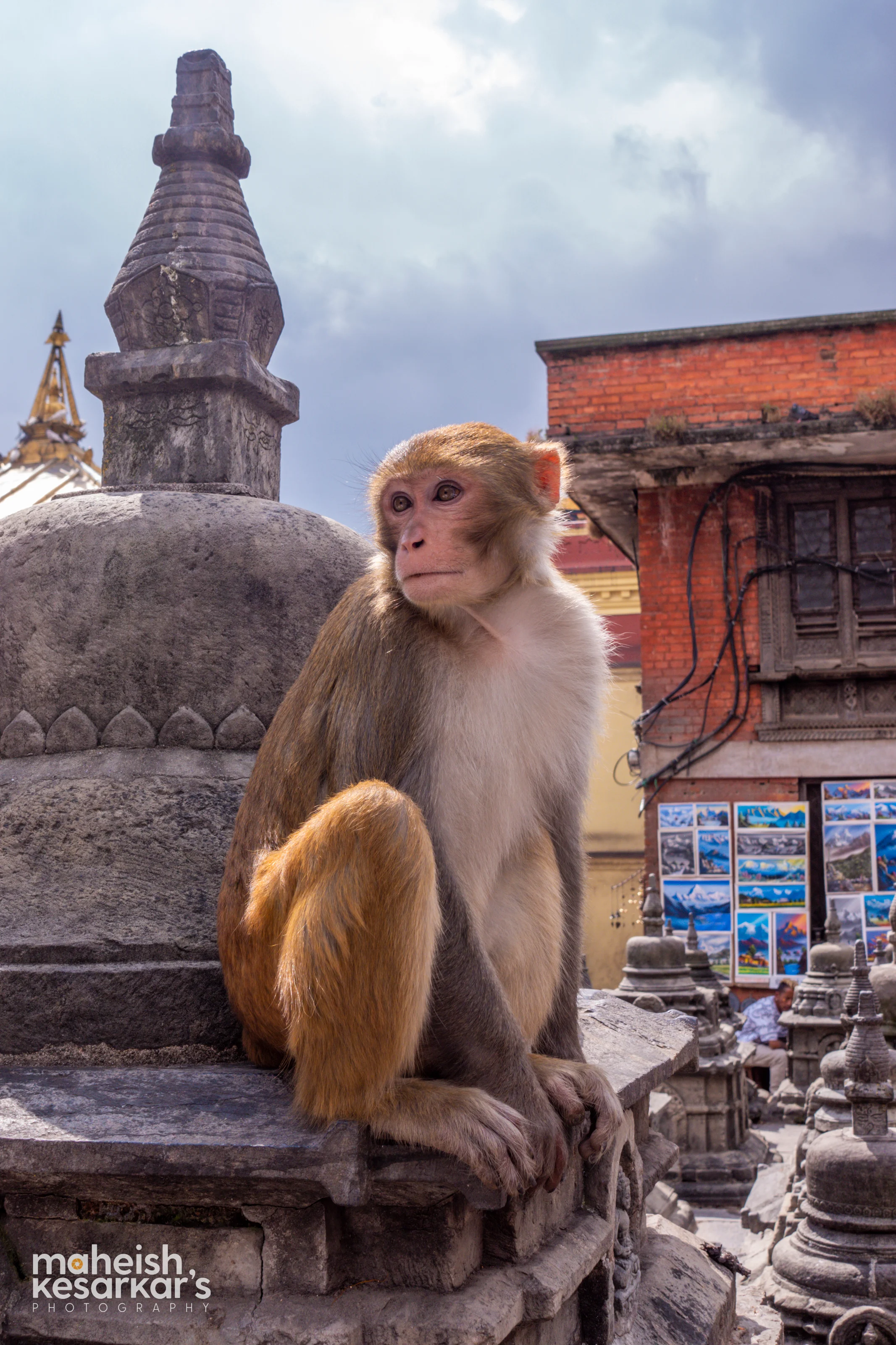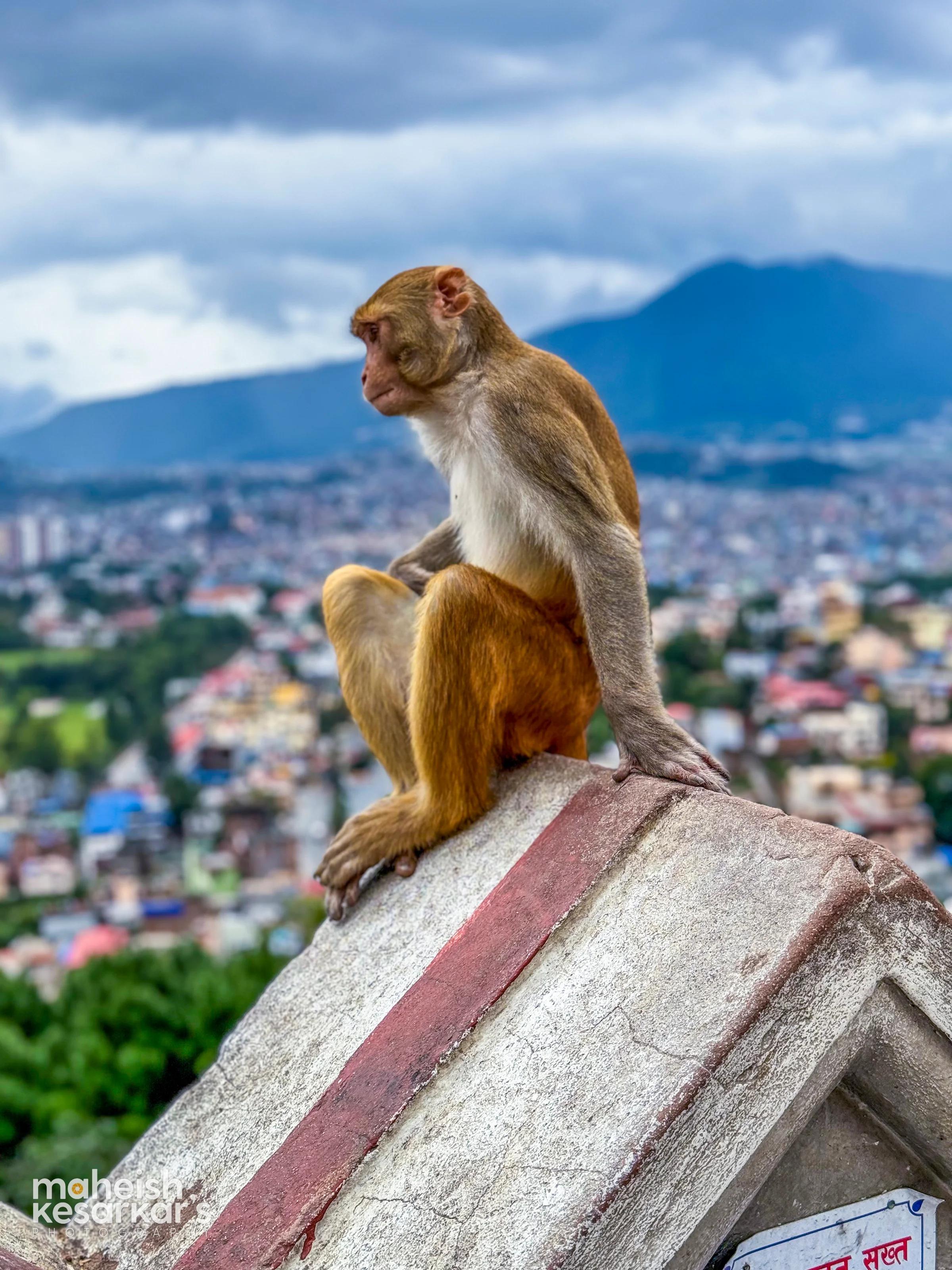 Serene Monkey Overlooking Kathmandu Valley – Wildlife at Swayambhunath, Nepal