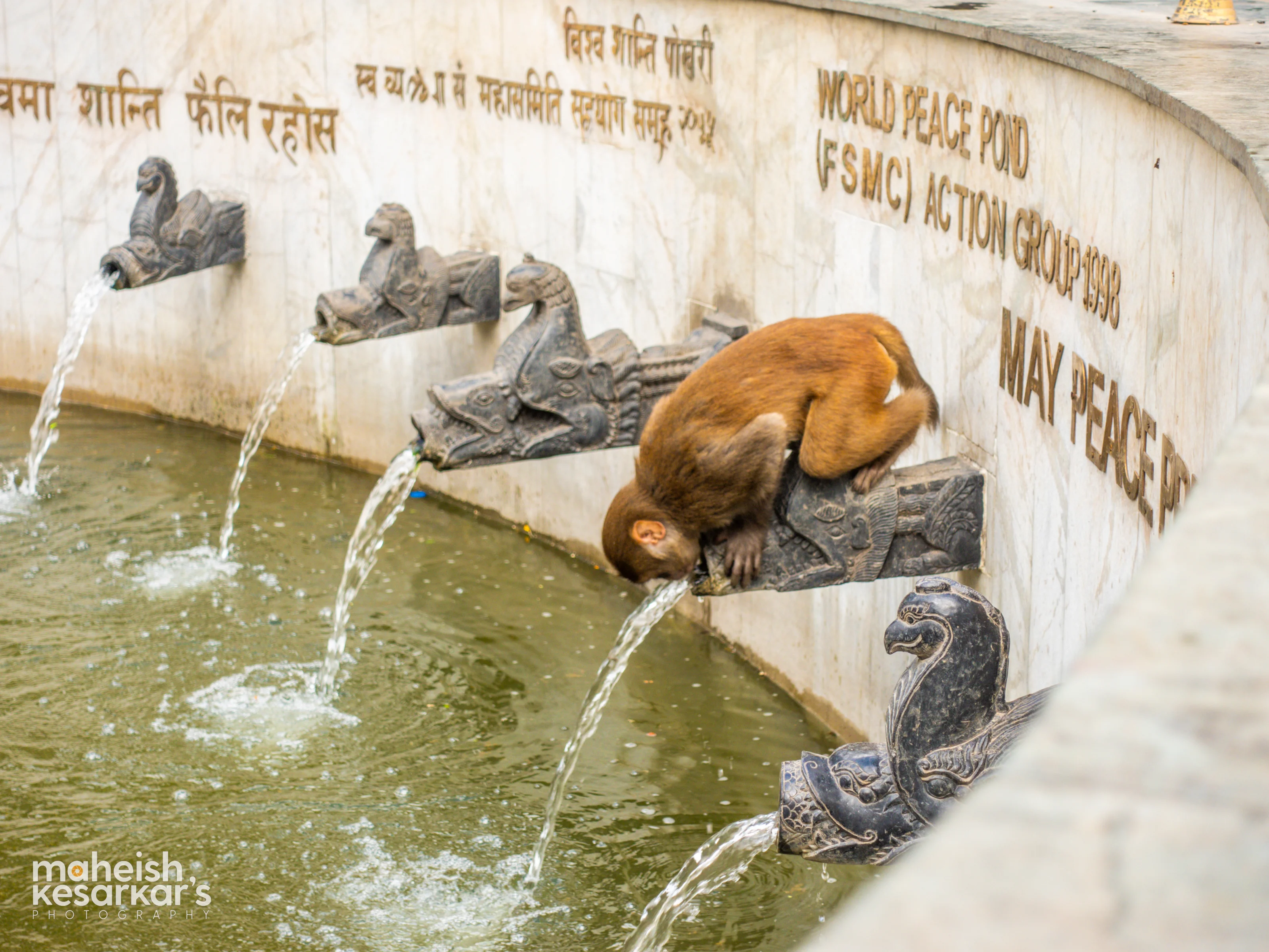 Thirsty Monkey Drinking Water at World Peace Pond – Wildlife in Harmony with Nature