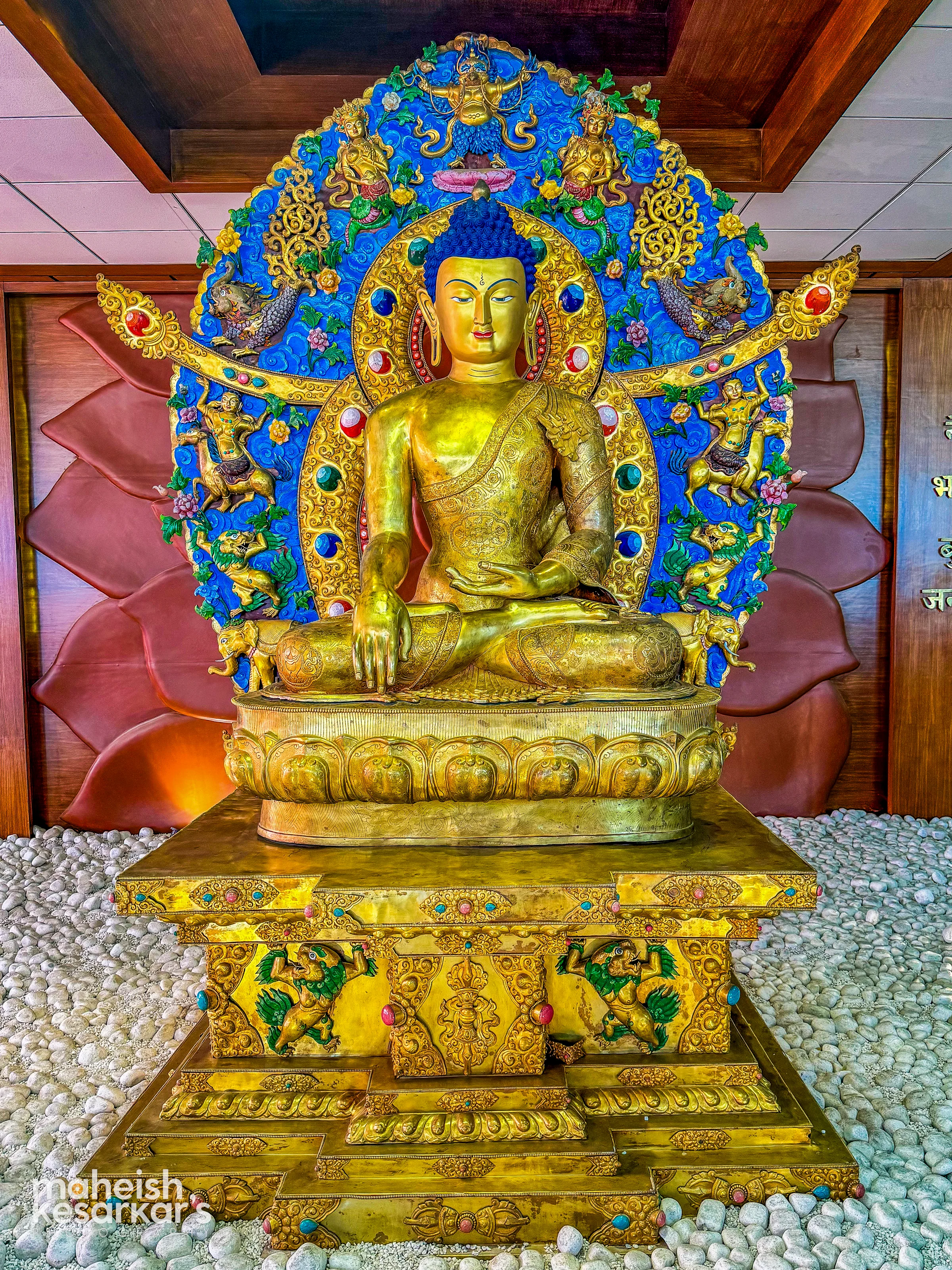 Golden Buddha Statue with Ornate Halo – A Symbol of Peace and Enlightenment in Nepal