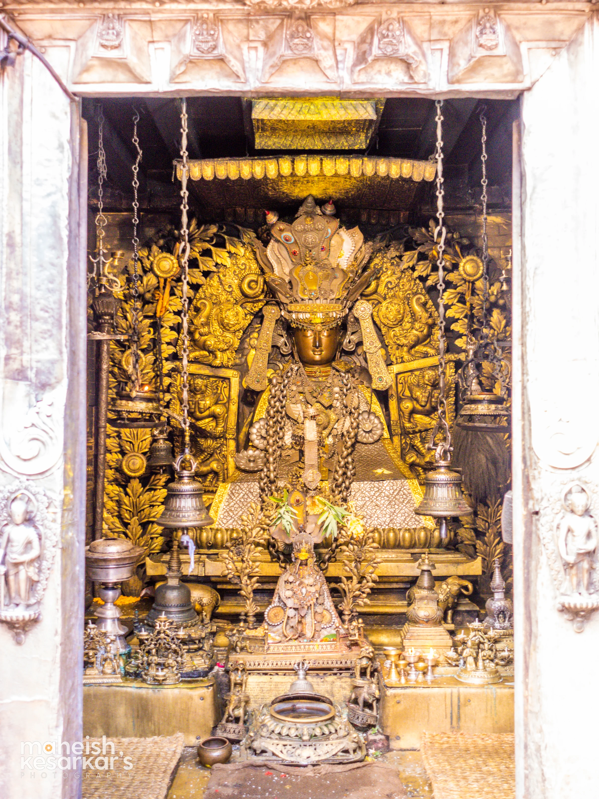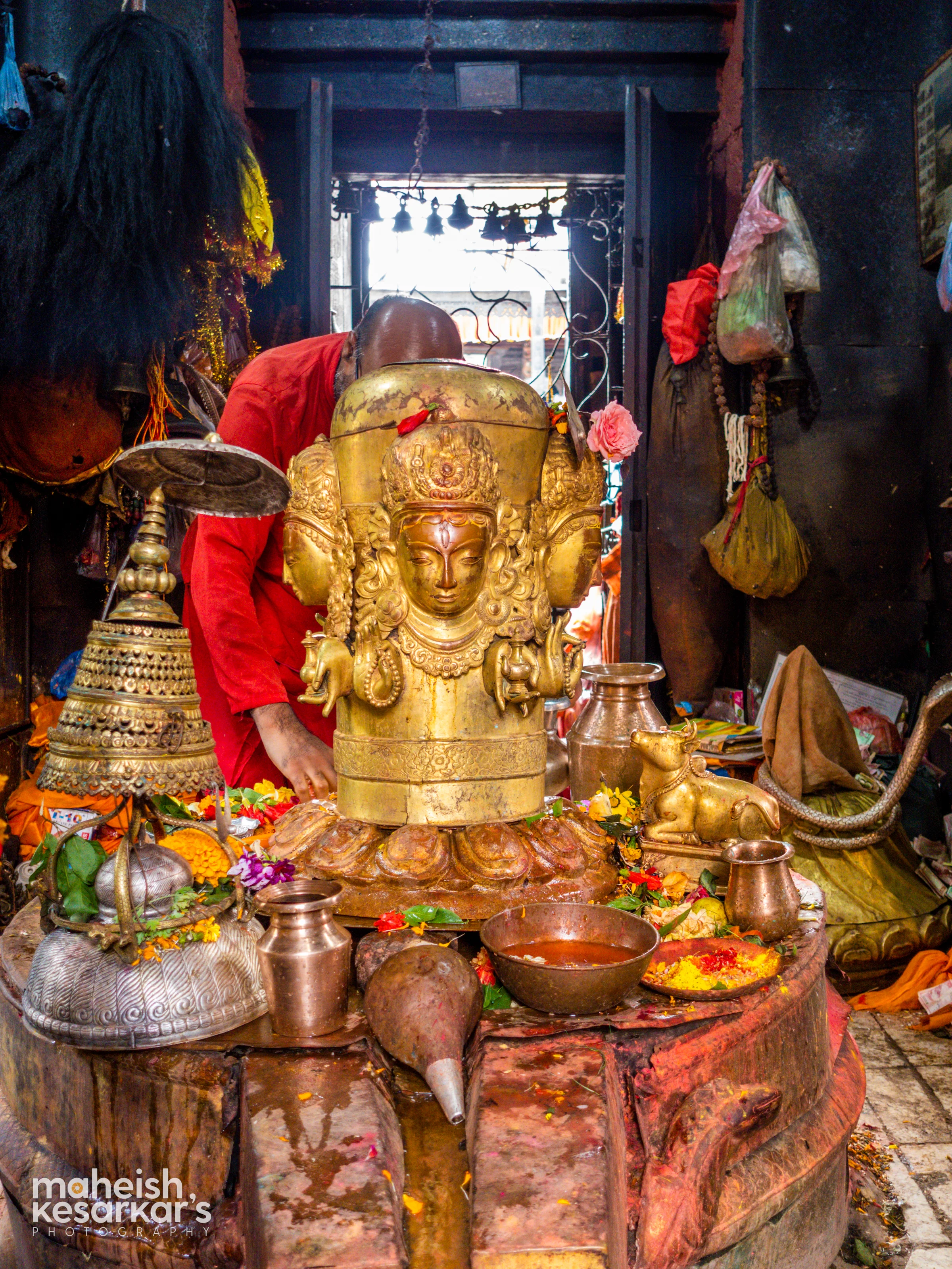 Sacred Golden Idol of Lord Bhairava at a Hindu Temple in Nepal