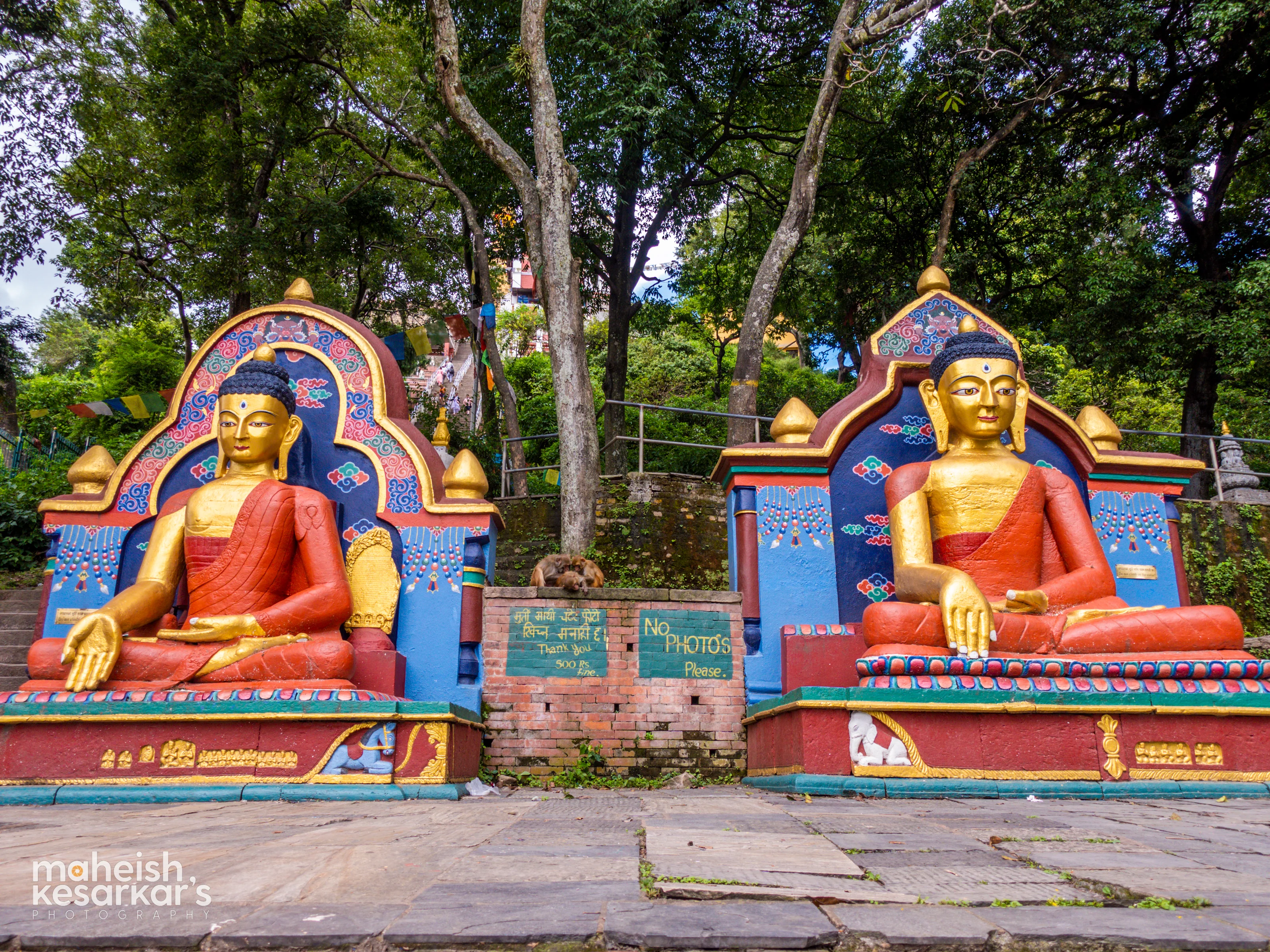 Twin Buddha Statues at Swayambhunath Stupa – A Serene Symbol of Peace and Enlightenment in Kathmandu
