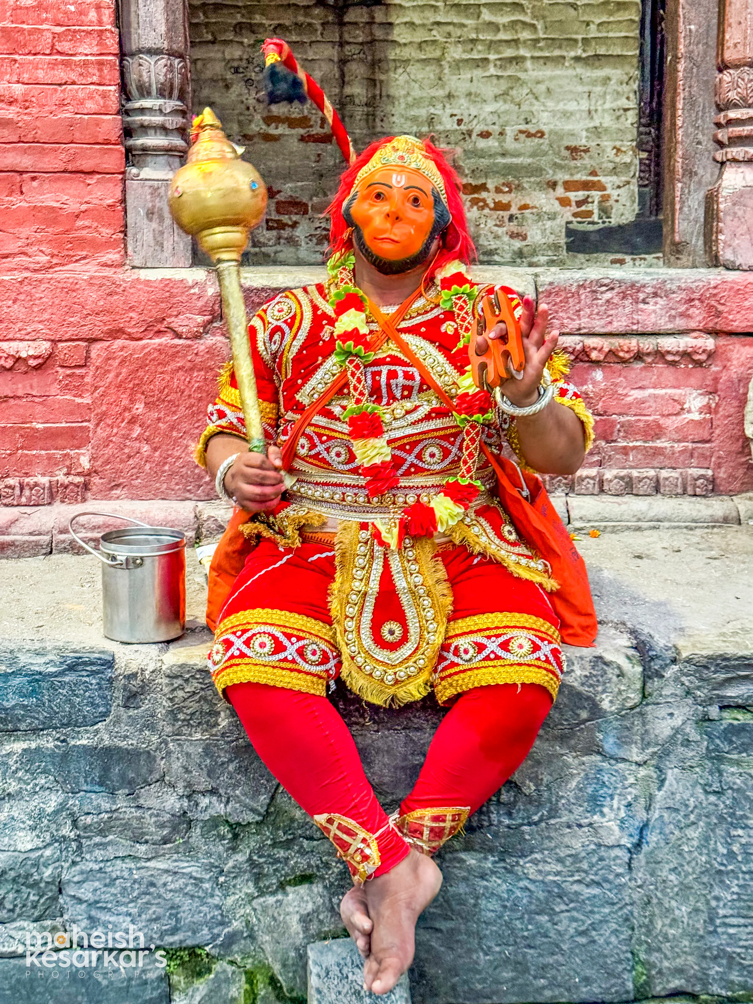 Hanuman Devotee in Traditional Costume – Hindu Mythology Street Performance