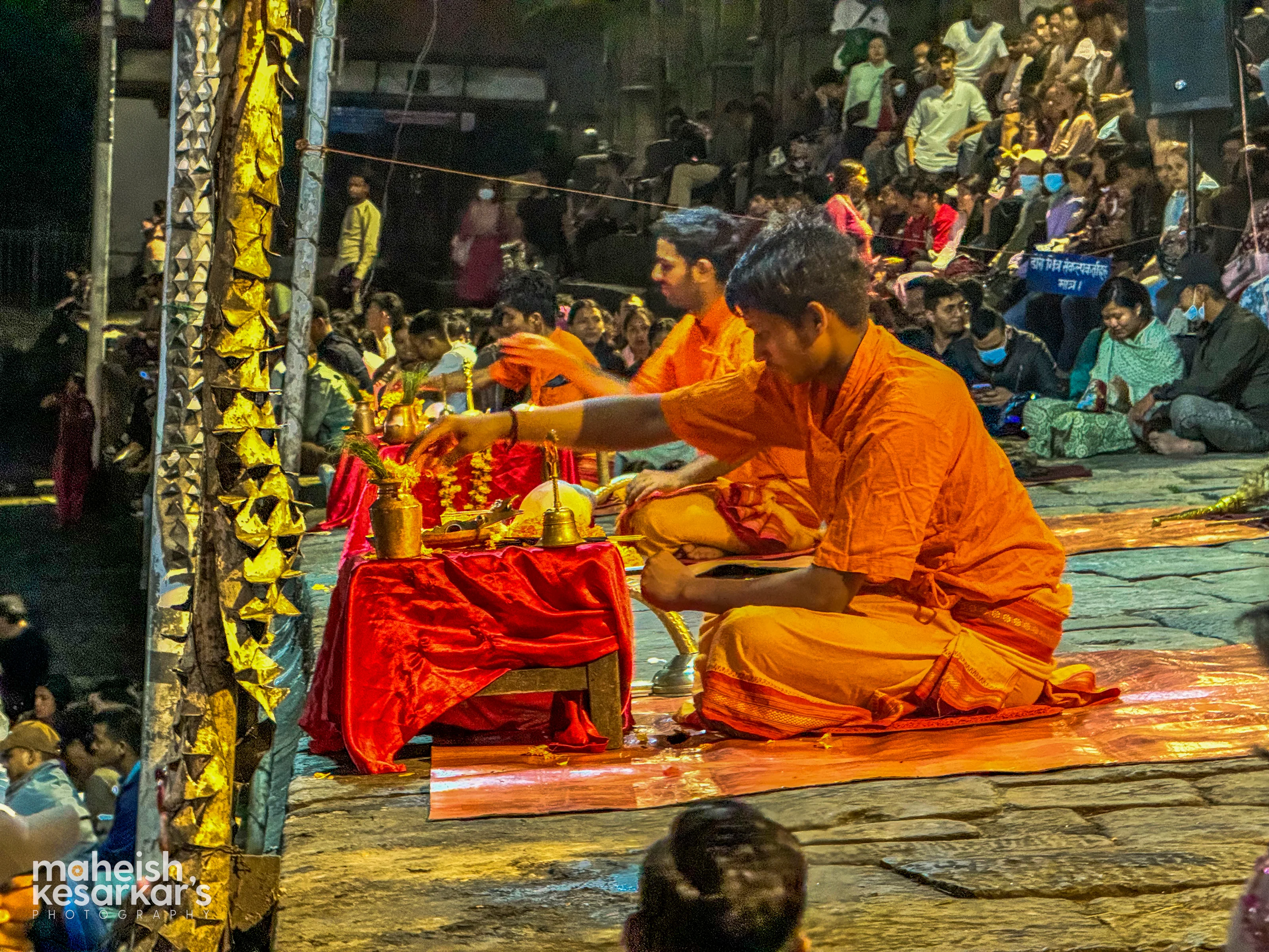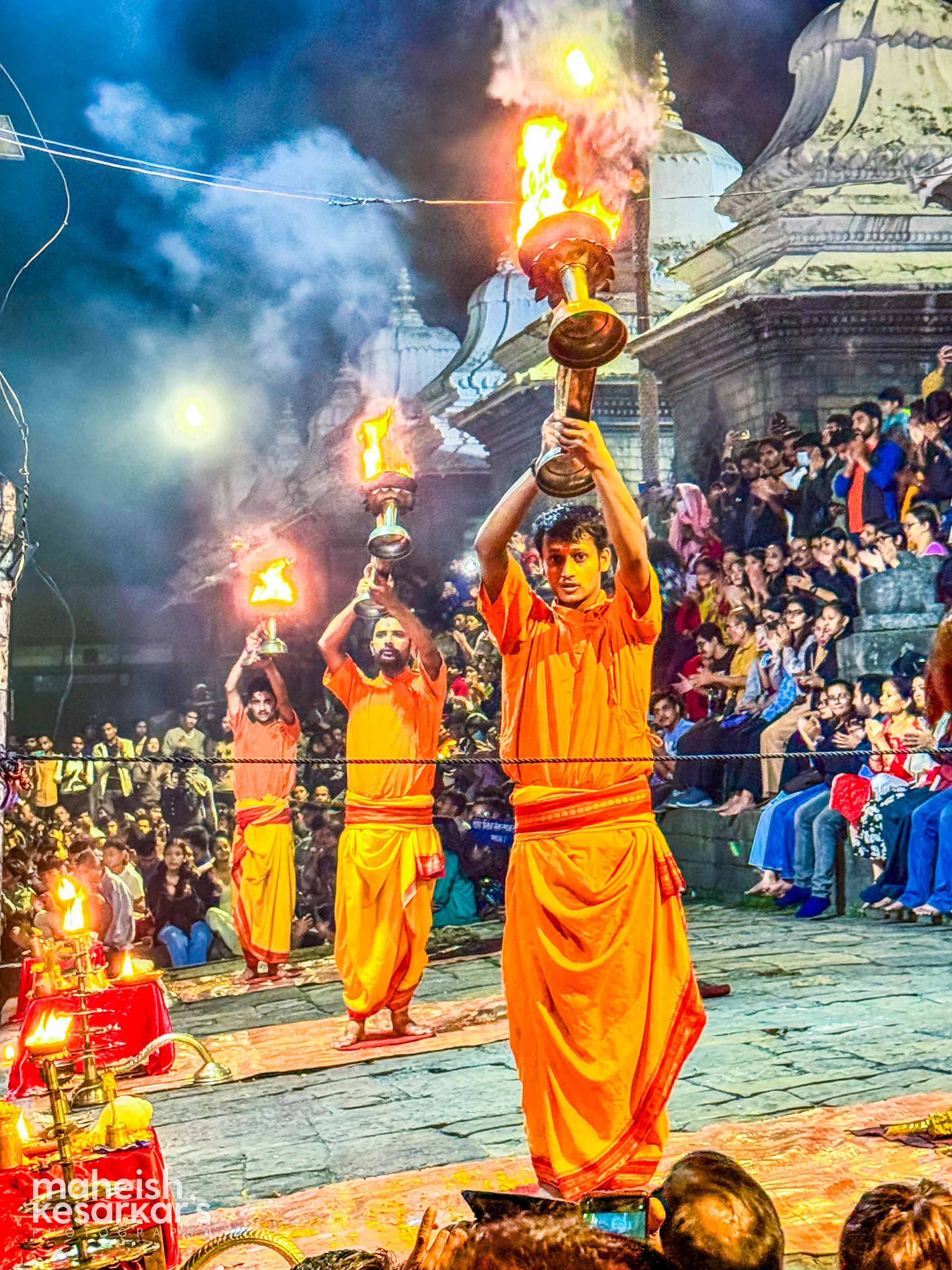 Pashupatinath Aarti Ceremony – Hindu Priests Performing Evening Rituals on Bagmati River Ghats