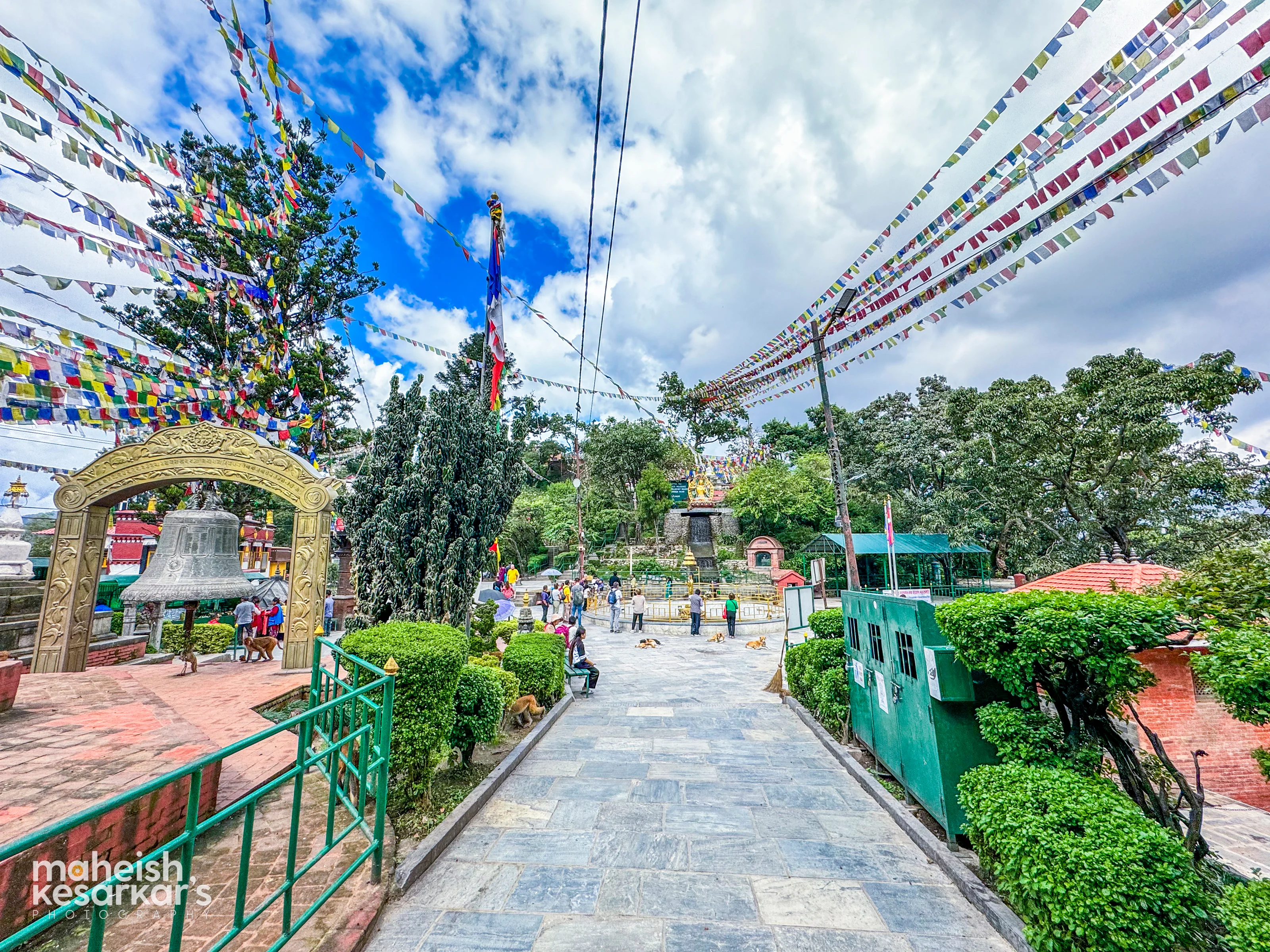 Serene Pathway to a Sacred Buddhist Site – Prayer Flags and Tranquil Vibes in Nepal