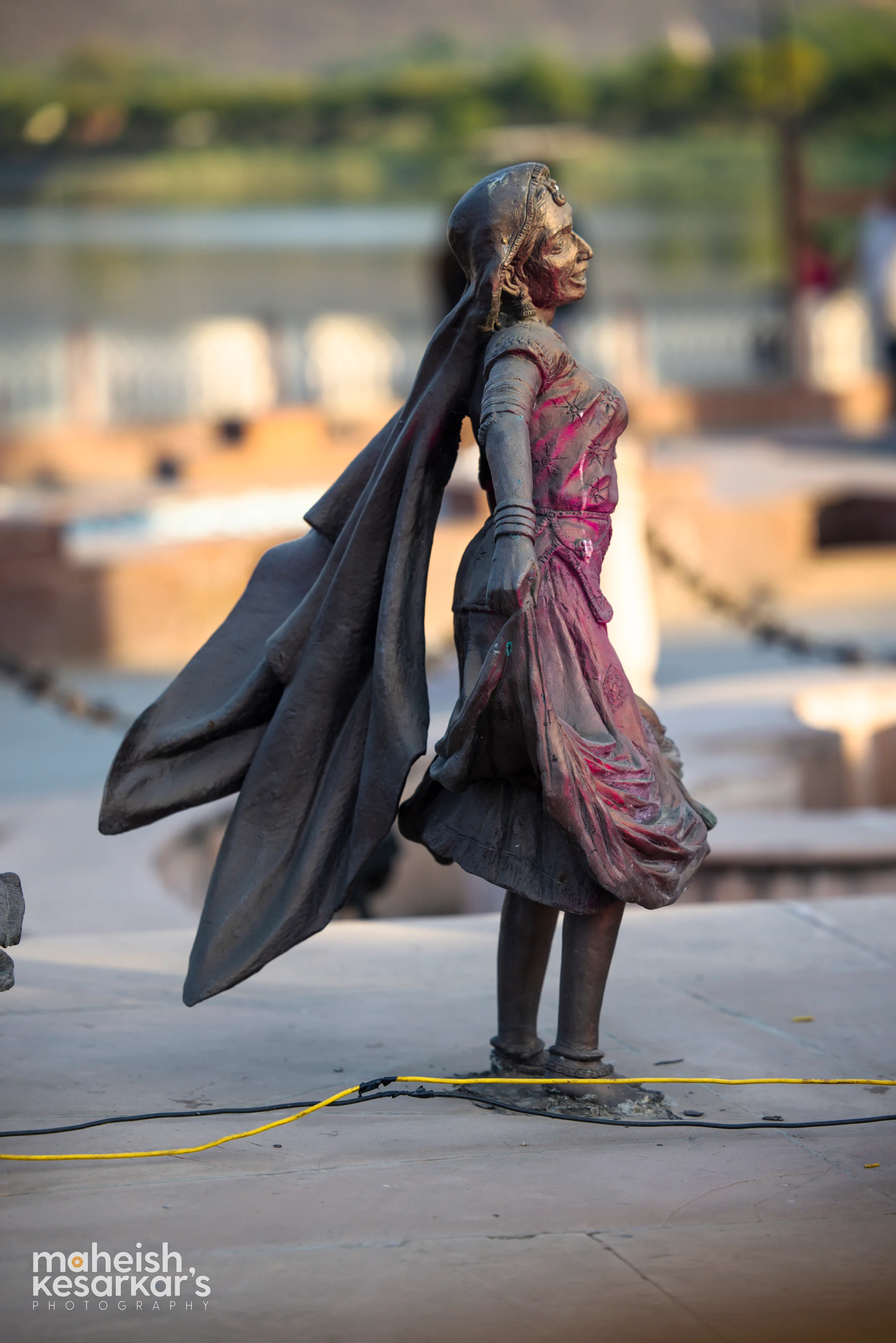 Graceful Rajasthani Woman Statue at Jal Mahal Jaipur Heritage Photography