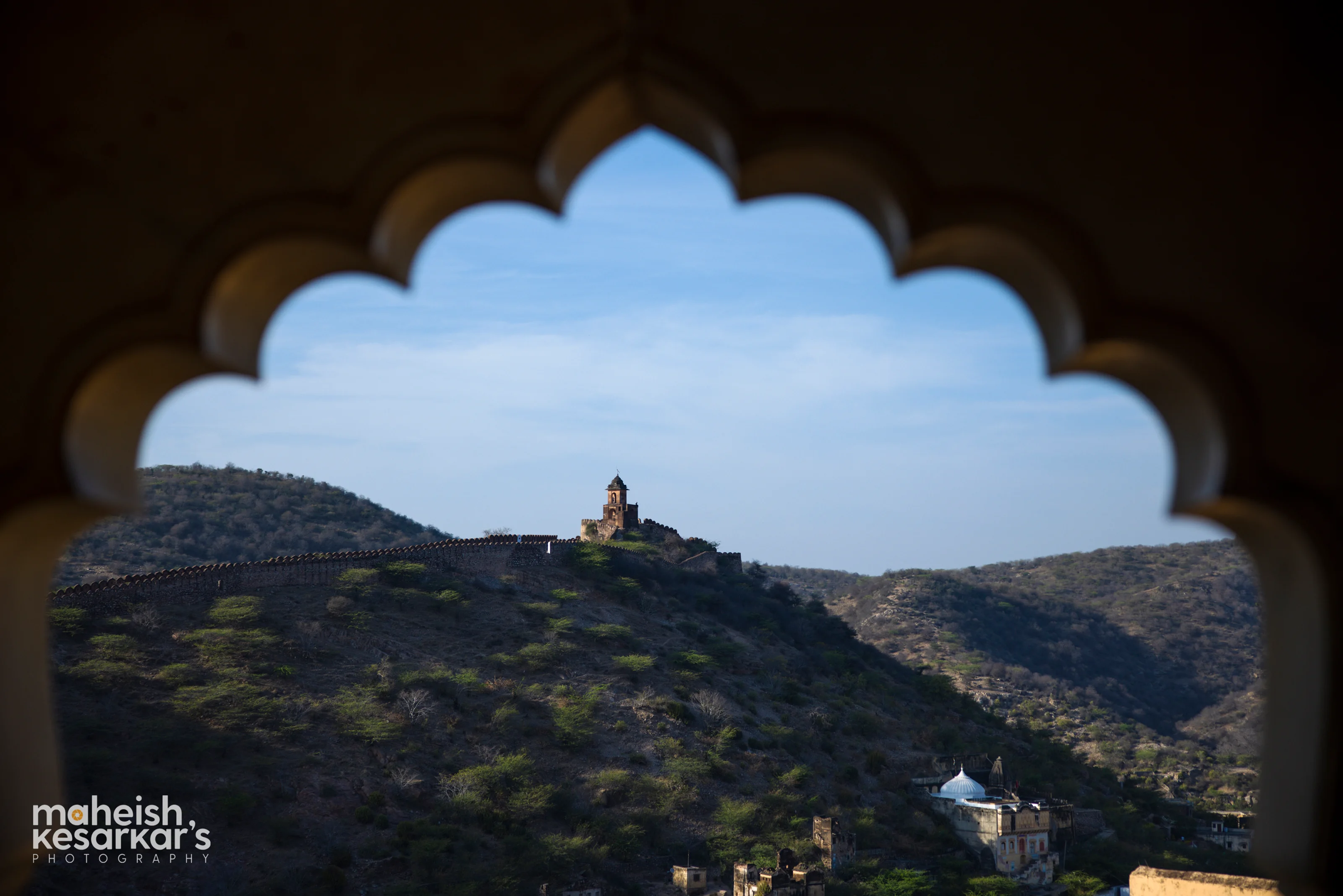 Jaigarh Fort Watchtower Framed by Traditional Rajasthani Arch in Jaipur