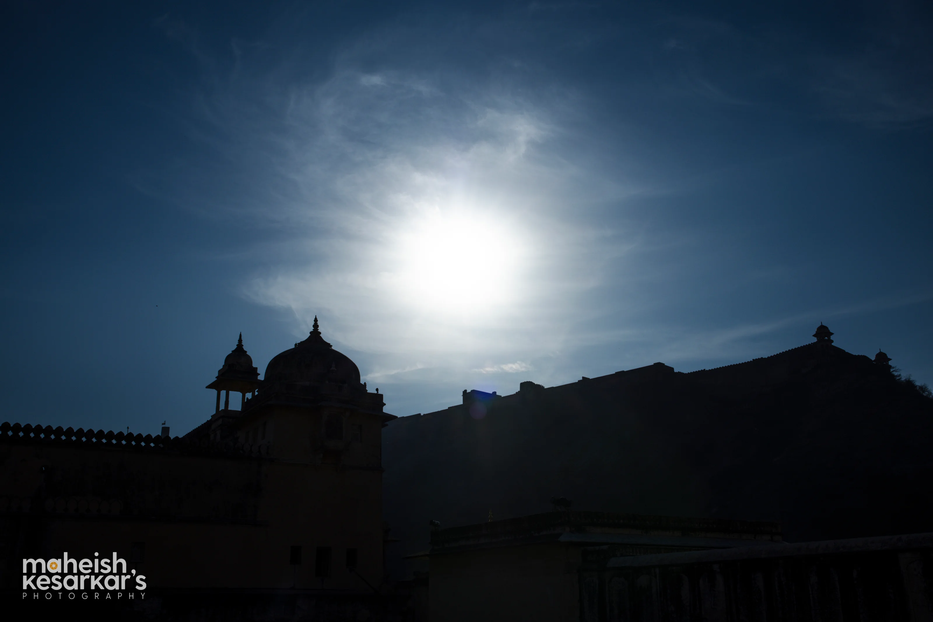 Majestic Silhouette of Amber Fort Jaipur Capturing Sunset Beauty and Architectural Grandeur
